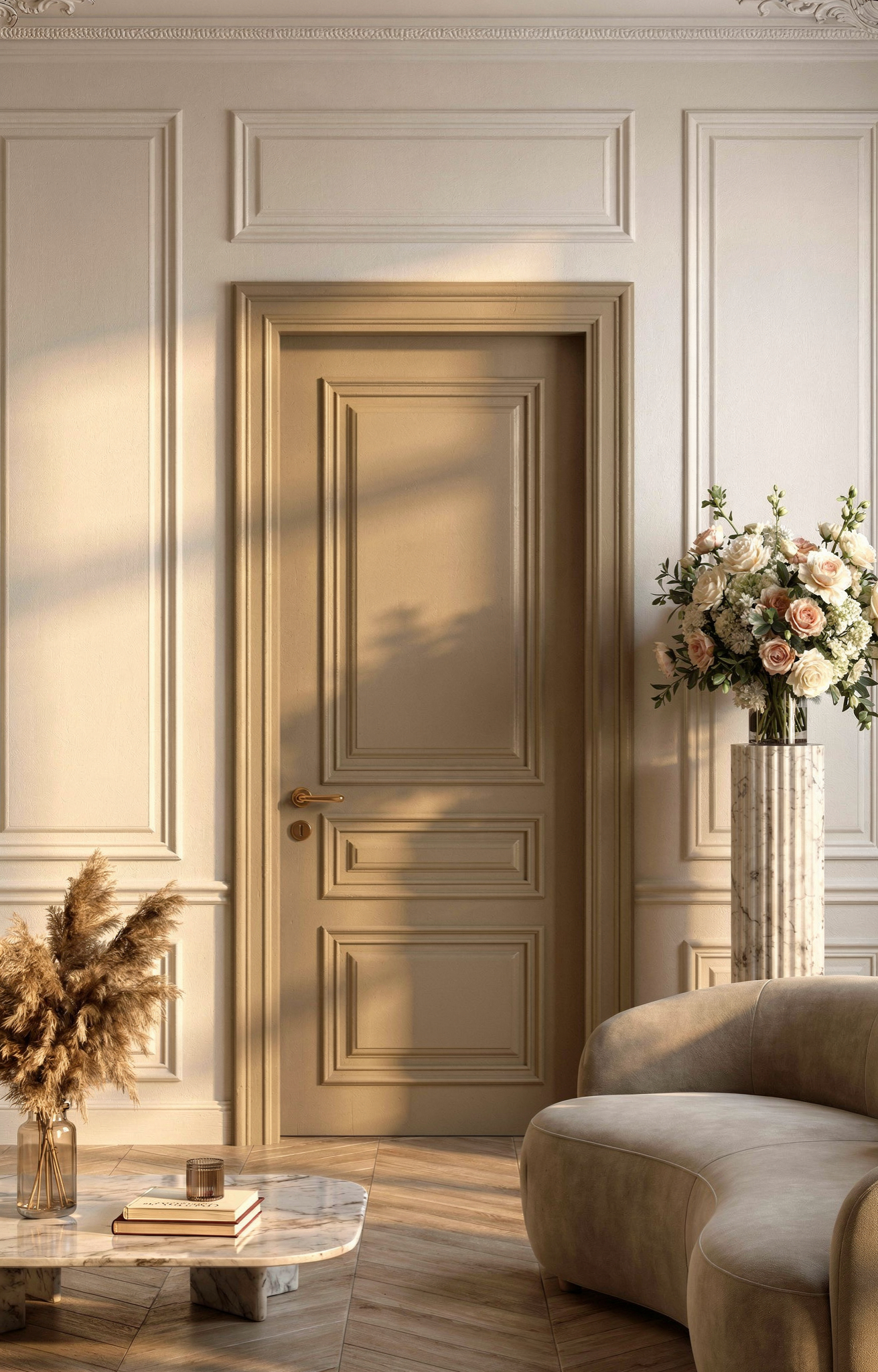 Kapı sadece odaları ayırmaz, dekorasyonu tamamlar. Duvarla hemyüz (sıfır) detaylar, tavana kadar uzanan görkemli kasalar ve sessiz kilit sistemleriyle mekanlar arası geçişi sanata dönüştüren mimari çözümler.